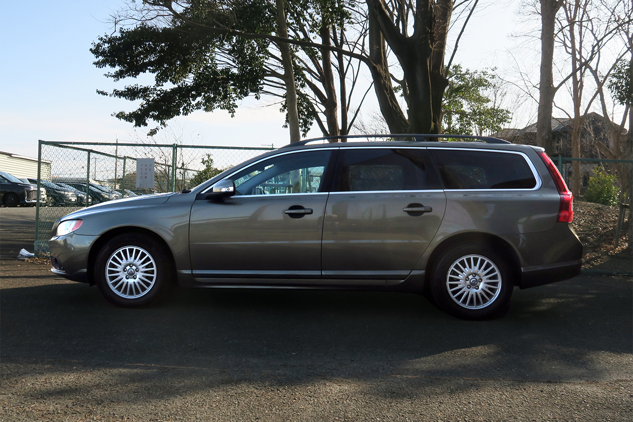 そしてこの車のポイントは、なんといってもこの「ケイパーグリーン」と呼ばれる希少なボディカラー。渋みのある大人っぽい淡いグリーンは、ともすれば大きく見せるこのBBのV70をスッキリと見せて、どんなシチュエーションにも似合う現代のステーションワゴンの佇まいを感じます。また、各機関の状態、外観・インテリアの状態も上々で、丁寧に乗られてきたV70ではないかと判断しています。